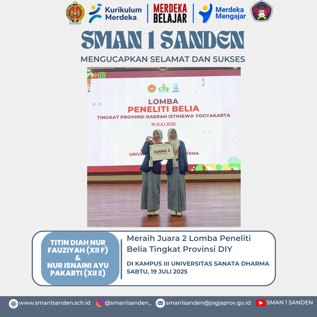 Selamat Titin Diah Nur Fauziyah (XII F) dan Nur Isnaini Ayu Pakarti (XII E) telah meraih juara 2 Lomba Peneliti Belia Tingkat ProvinsI DIY pada Har...